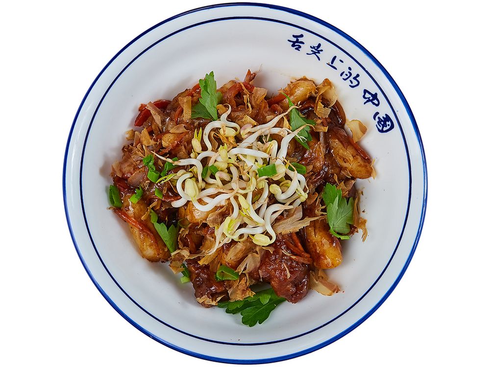 Ток поке, болгарский перец, морковь, белый лук, соус "Чоумейн", зеленый лук, кунжут, кинза, соевые ростки, говядина.