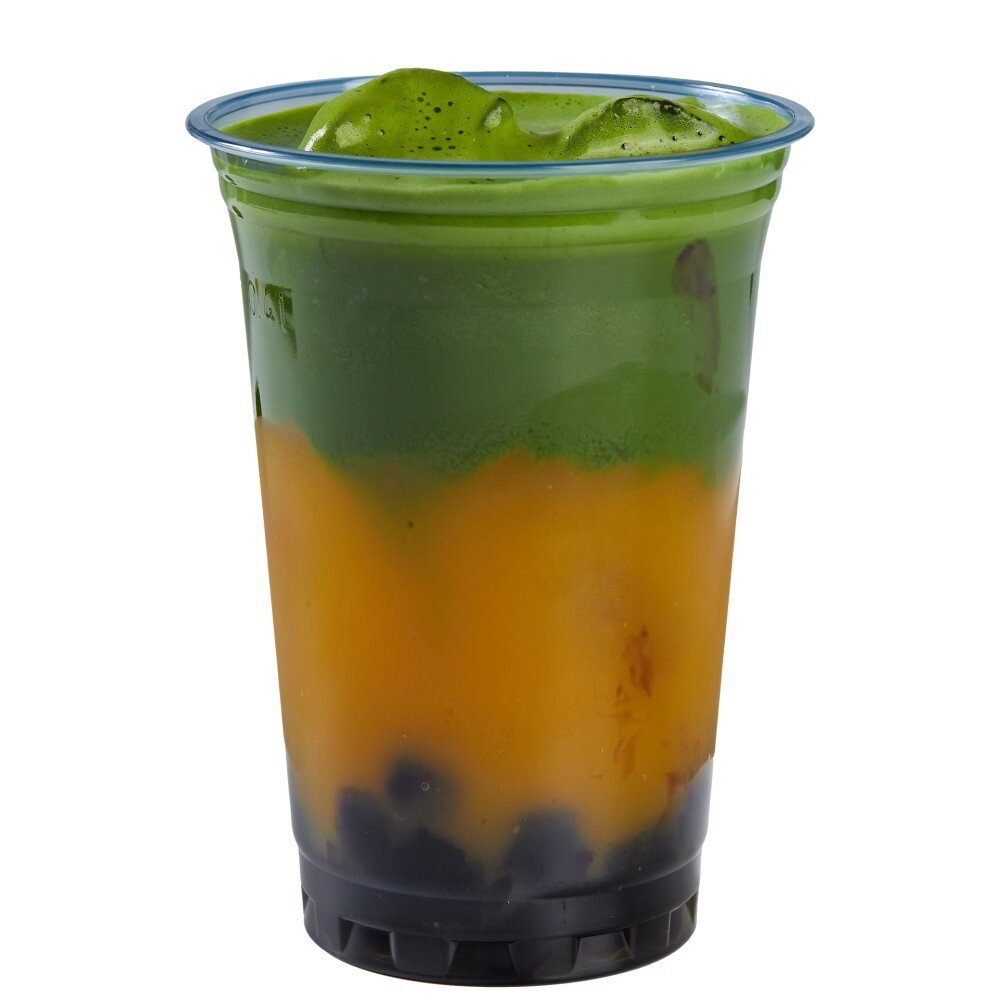 Матча, сок манго,тапиока,лед.