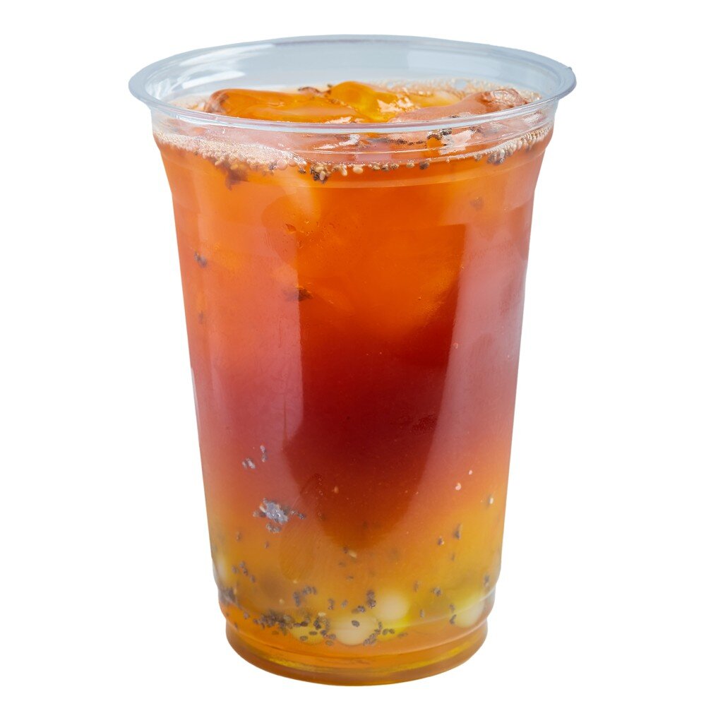 Чай Тайский, персиковый сок, чай жасмин, семена чиа, сироп, джус боллы, лед.