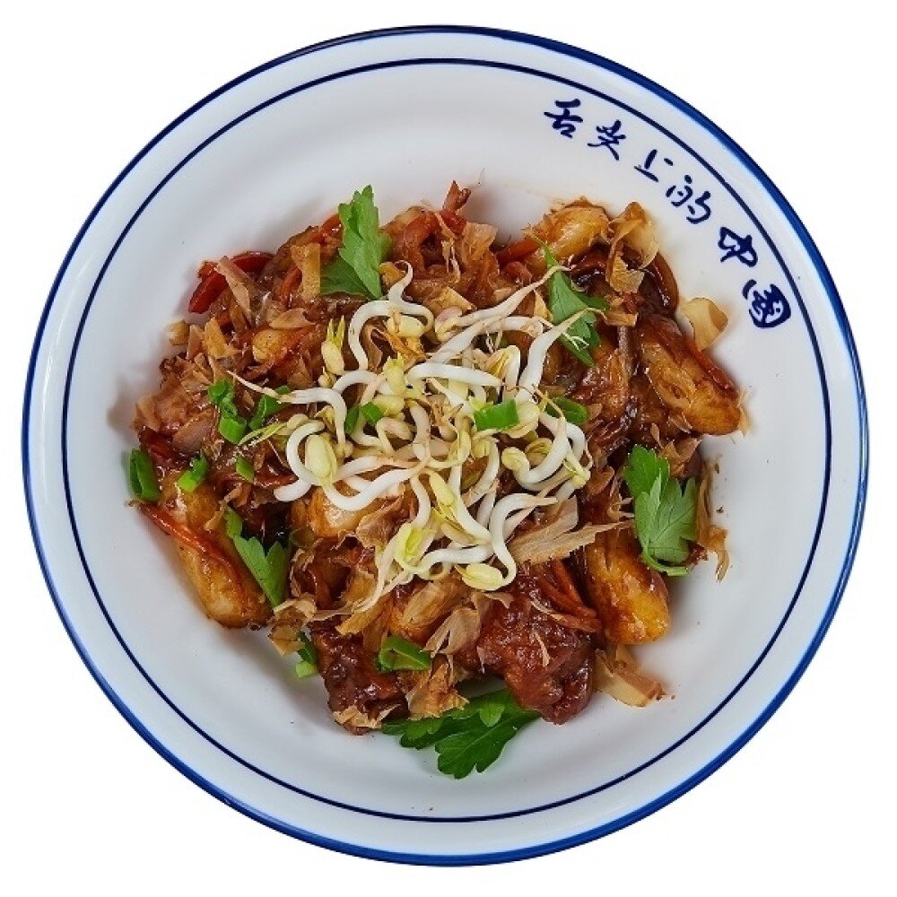 Соус "БлекБин", микс овощей, курица, стружка тунца.